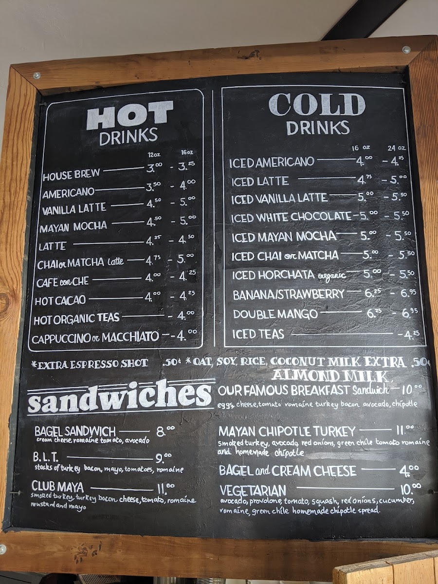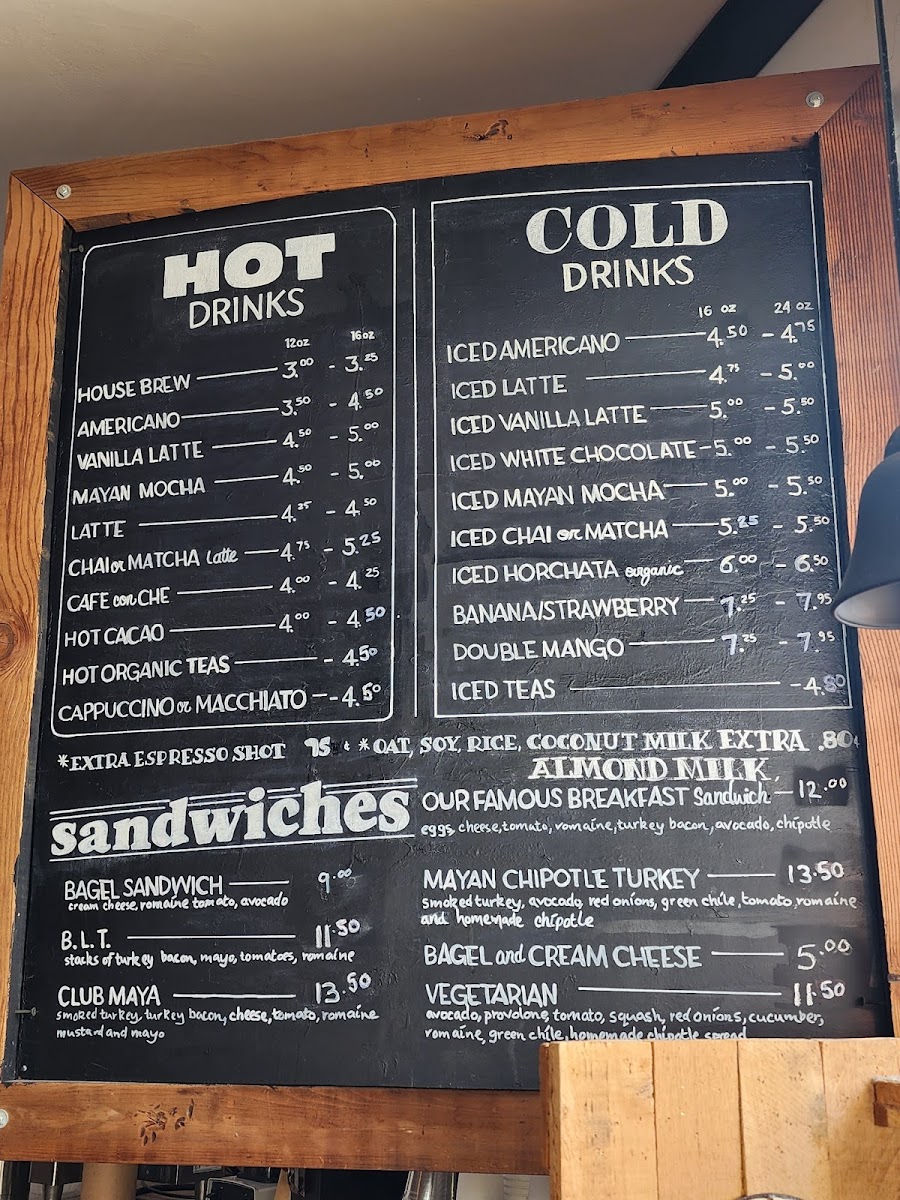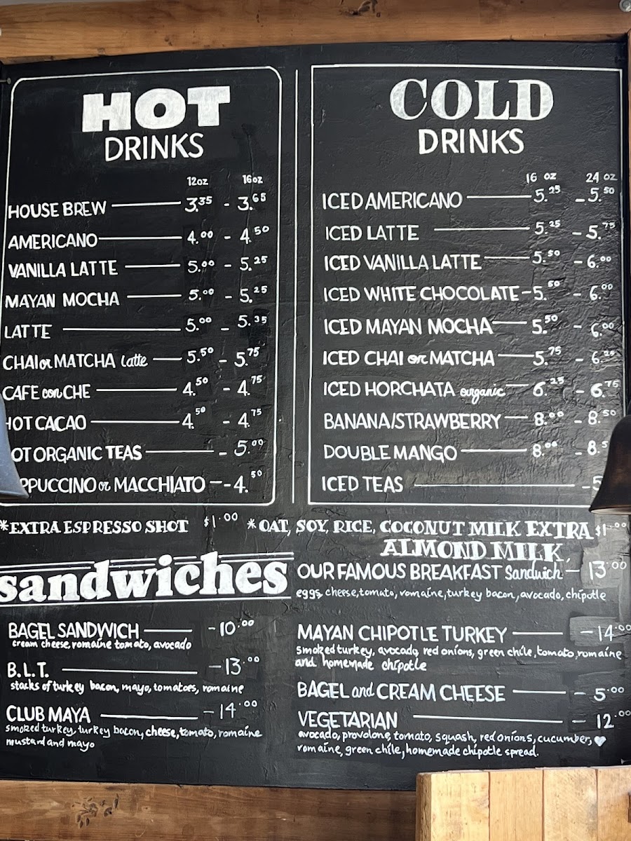 If you're feeling peckish, indulge in a selection of hearty sandwiches that are sure to satisfy. The B.L.T. is a classic done right, while the Club Maya brings a unique twist with its flavorful ingredients. Vegetarians will love the wheat vegetarian sandwich with its zesty chipotle sauce that adds a pop of flavor to every bite. Don’t forget to pair your meal with a cup of one of their hot organic teas or a Vanilla Latte for the perfect pick-me-up.